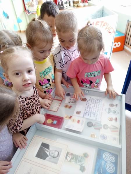 Вместе с педагогом Мариной Александровной, ребята посетили музей, созданный сотрудниками ДОУ. Там ребята увидели самые разнообразные экспозиции. Вначале нашего путешествия в музее малыши с интересом рассмотрели макет нашего города, с помощью воспитателя называли некоторые его объекты: магазин «Магнит», куда ходят с родителями, школу № 80, наш детский сад. Игрушки, которые были во времена их бабушек и дедушек, все захотели потрогать и поиграть ими. Ребятишки с любопытством рассматривали грамоты, дипломы и медали в экспозиции, посвященной 80-летию СХК - Сибирского химического комбината, в котором трудились и трудятся бабушки, дедушки или родители некоторых наших воспитанников. Среди множества наград была грамота папы Милы Муленко, Павла Анатольевича за 1 место в конкурсе «Лучший молодой работник СХК - 2008» среди рабочих. Экспонат «Водопад времени» привлек внимание детей своей необычностью и фотографиями, с изображением различных событий в истории СХК. Как мальчиков, так и девочек заинтересовал уголок с военной тематикой. Малыши посмотрели и потрогали экспонаты: военную форму, старинную гармошку, медицинскую сумку и многое другое. Это было первое посещение музея в жизни наших воспитанников и теперь станет доброй традицией. Так как там еще осталось много интересного и несомненно появится новое.
