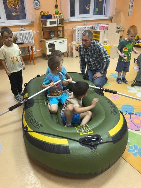 В группе «Звёздочка» прошёл мастер-класс от пап «Туристический поход». Наши папы: Мордвин Антон Юрьевич, Скорниченко Сергей Евгеньевич, Литвин Денис Валерьевич и Чухлов Иван Александрович. Папы учили ребят надувать лодку, ставить палатку, укладывать дрова в костёр, ребята пробовали упаковаться в спальный мешок, а завершении с гитарой посидели у импровизированного костра. Мастер-класс прошёл весело, дети были в восторге.