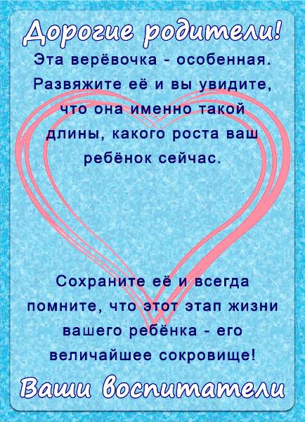 2. До 8:30 отписывайтесь если вас не будет или вы опаздываете, чтобы мы могли поставить вас на питание. А если вы выходите с больничного/отпуска, то предупреждайте накануне) 3. У ребёнка обязательно должна быть сменная одежда, даже если не бывает казусов. Они могут облиться или опрокинуть еду. 4. Нам важно ваше мнение, поэтому на объявления и информацию мы просим ставить реакции, чтобы понимать, что до вас дошла информация и вы в курсе событий. 5. Давайте знакомиться, пишите чья вы мама и как вас зовут) Может быть у вас с ребёнком есть хобби? Расскажите о нём. А также просим прикрепить ПОРТРЕТНУЮ фотографию (которая вам нравится или ребёнку). Эти фотографии будут использованы в развивающей среде группы, а также оформлены шкафчики наших малышей. Отправляемся в наше невероятное путешествие, в добрый путь!» Хочется отметить, что ЧАТ ПРОСТО ВЗОРВАЛСЯ от активности родителей! Все стали писать подробные сообщения о детях, прикладывать фото и благодарить воспитателей за такое введение. И при первом живом общении мы подготовили для наших родителей приятный сюрприз. Это небольшой текст, с прикрепленной не простой веревочкой (фото прикладывается) Эмоциям родителей не было предела! Родителям – НАДО Душевно, а не формально. 15.10.2025г. «Мой город»
