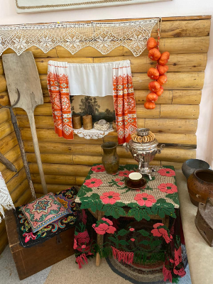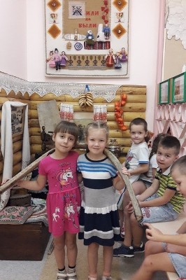 1. Музей народного быта. Исследования в области дошкольной педагогики и психологии свидетельствуют о том, что именно в дошкольном возрасте закладываются базисные основы личности, начинается процесс становления и формирования социокультурного опыта, «складывается» человек. Воспитание патриотических чувств на современном этапе развития общества обязывают ДОУ развивать познавательный интерес, любовь к Родине, ее историко-культурному наследию. Но как это сделать максимально интересно для детей? И в этом нам помогает специально организованное пространство «Музей народного быта». Там, дети узнают, что такое прялка, для чего нужно веретено, внимательно рассматривают самовар, крынку, ступку, попробуют просеять муку через сито, узнали о предназначении сундука.