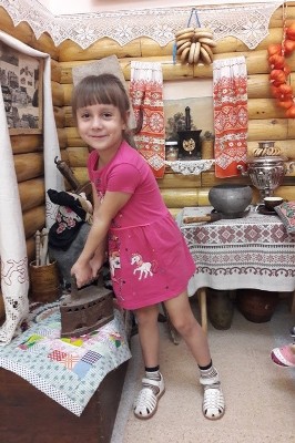 Неописуемый восторг вызывает у них настоящий чугунок, поставленный на стол с помощью ухвата и старинный утюг, который, оказывается, работает не с помощью электричества, а на горячих углях! Невозможно на вербальном уровне объяснить ребятам значение давно вышедших из употребления слов, таких как кадка, ухват, кочерга, ступа, коромысло, лопата для печи и т.д. Только увиденные своими глазами, обыгранные в процессе игры-занятия, экспонаты музея становятся знакомыми, узнаваемыми. Это дает возможность ребенку не только рассмотреть предмет со всех сторон, но и сравнить с теми предметами, которыми люди пользуются в быту сегодня. Использование предметной среды мини-музея в детском саду дает возможность знакомить детей со старинными вещами, народными традициями, обычаями гостеприимства, развивает интерес к истории русского народа. Воспитание любви к Родине является одной из главных составляющих нравственного воспитания подрастающего поколения, а воспитание любви к Отчизне невозможно без привития интереса к своей «малой» Родине, её людям, их культуре, творчеству.