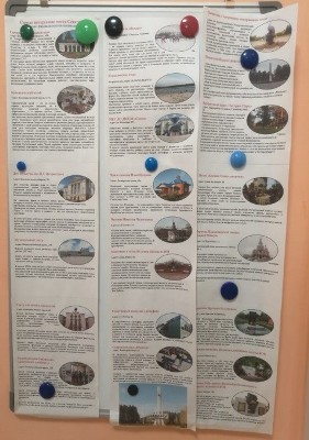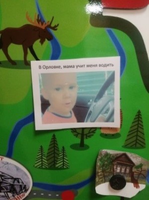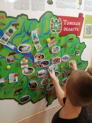 На карте отмечено, какие животные водятся в этих местах, какие природные, архитектурные, индустриальные объекты расположены в области. Путешествуя с родителями по области, ребята привозят фотографии, которые размещают на доске. Таким образом, география области становится им более понятной и интересной. По результатам путешествий по родному краю, ребята готовят проекты, выставки, составляют коллекции и пишут рассказы о малой родине.