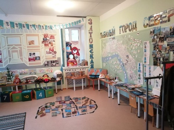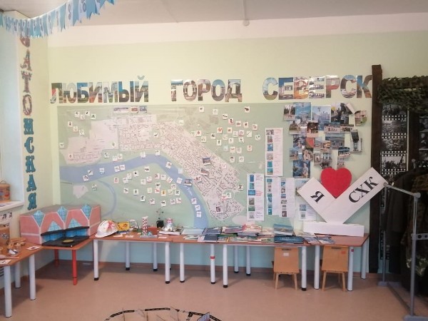 В обществе наблюдается «дефицит нравственности». Многие психологи и педагоги говорят о том, что процесс воспитания патриотизма необходимо начинать в дошкольном возрасте. В этот период происходит формирование духовно-нравственной основы ребенка, эмоций, чувств, мышления, механизмов социальной адаптации в обществе, начинается процесс осознания себя окружающем мире. Данный отрезок жизни ребенка является наиболее благоприятным для эмоционально-психологического воздействия, так как его образы восприятия очень ярки и сильны и поэтому они остаются в памяти надолго, а иногда и на всю жизнь. Любовь к Отечеству начинается с любви к малой Родине с любви к своему городу. В этой связи огромное значение имеет ознакомление дошкольников с историческим, культурным, географическим промышленным своеобразием родного города. Знакомясь с родным городом, его достопримечательностями, его историей, ребёнок учится осознавать себя живущим в определенный временной период, в определенных этнокультурных условиях и то же время приобщаться к богатствам национальной и мировой культуры. В музее представлены макеты архитектуры Северска, образцы ЗАТОмской росписи, книги и картины о родном городе. Особый интерес у детей вызывает карта Северска, на которой можно не только найти свой дом но и разместить картинки с растениями и животными нашего города. В ходе изучения родного города ребята нарисовали рыб, которые водятся в реке Томь, красно книжные растения, произрастающие на территории города, а так же птиц, насекомых и животных. В планах нарисовать памятники архитектуры города Северска.