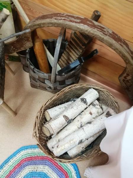 В рамках этой экспозиции дети узнают, что такое прялка, для чего нужно веретено, внимательно рассматривают самовар, крынку, ступку, попробуют просеять муку через сито, узнали о предназначении сундука.
